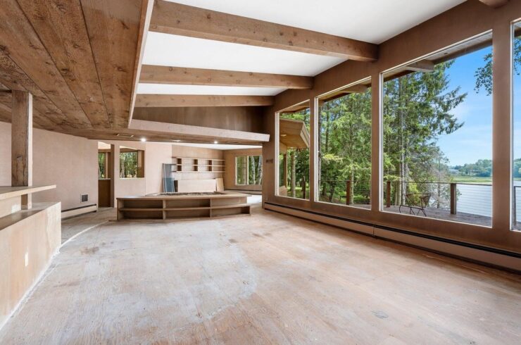 - Mid-Century Modern Vibe: Features like the extensive original wood paneling, large windows, and an incredible riverfront setting make this a rare find.