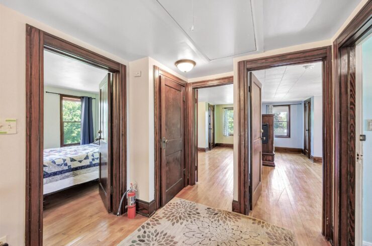 The main floor is designed for easy, bright living. The oversized dining room and large, brightly lit kitchen offer sweeping views of the rolling green countryside—a peaceful backdrop for everyday life. With a dedicated first-floor office and a half-bath, it perfectly accommodates modern remote work needs. Upstairs, three spacious bedrooms all feature the sought-after convenience of walk-in closets, providing ample storage rarely found in homes of this age.