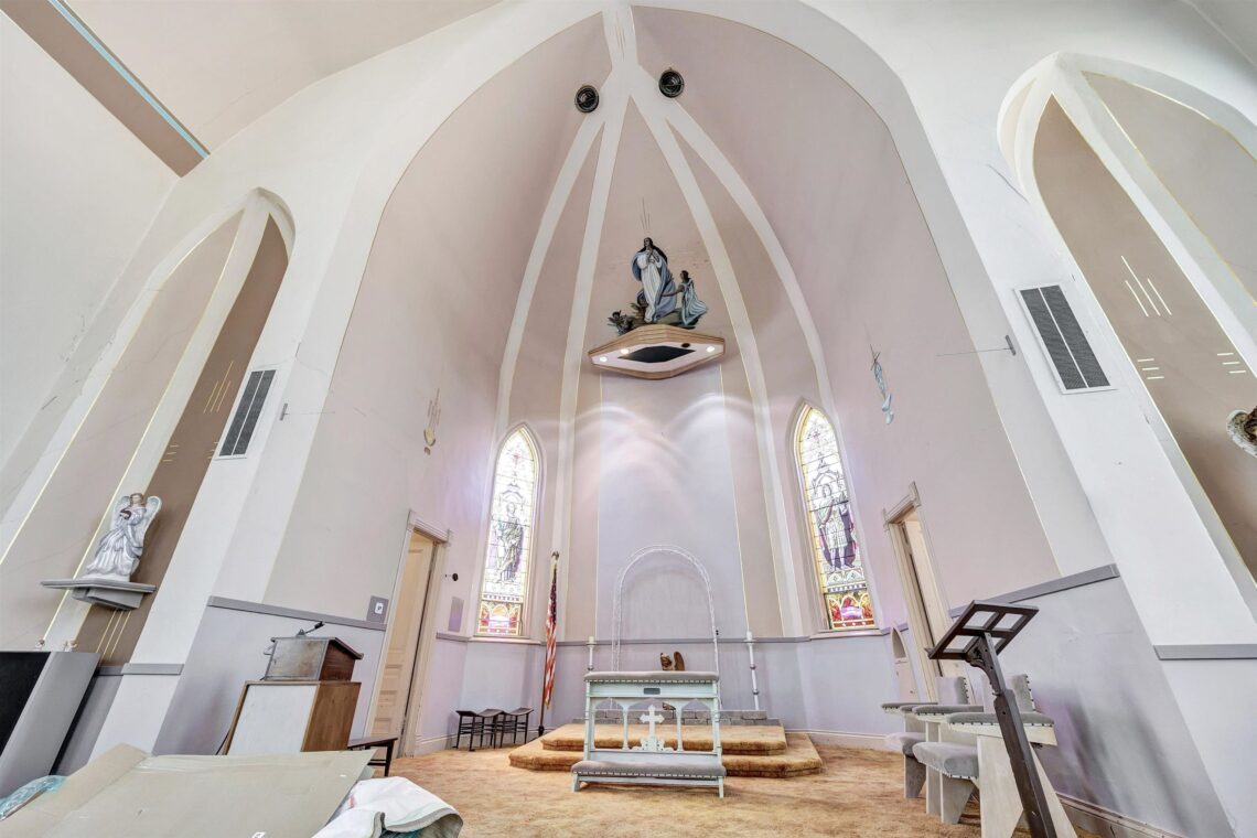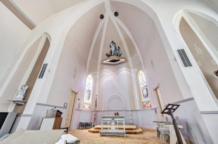 The building retains all the architectural elements expected from a structure of this vintage—including the high ceilings, incredible solid framework, and even some of the original pews—providing a unique foundation that simply cannot be replicated today. Finding a structure of this magnitude, in such good condition, and for this price, is a feat we were incredibly proud to secure.