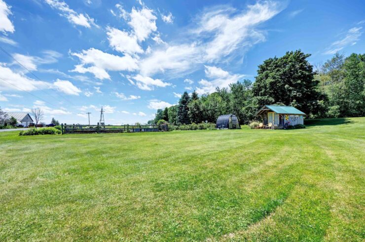 The practical amenities continue outside with the expansive 3.05 acres of land. The new owners have not only a church and a home but also a haven for hobbies, including a deep, detached three-car garage with one stall converted into a desirable heated workshop—perfect for year-round projects. The property also boasts peaceful garden areas with raised beds and raspberry bushes, promising bountiful harvests and simple, pastoral pleasure.